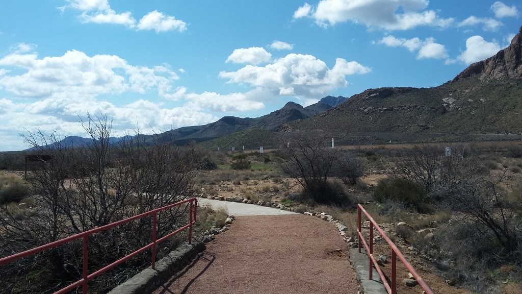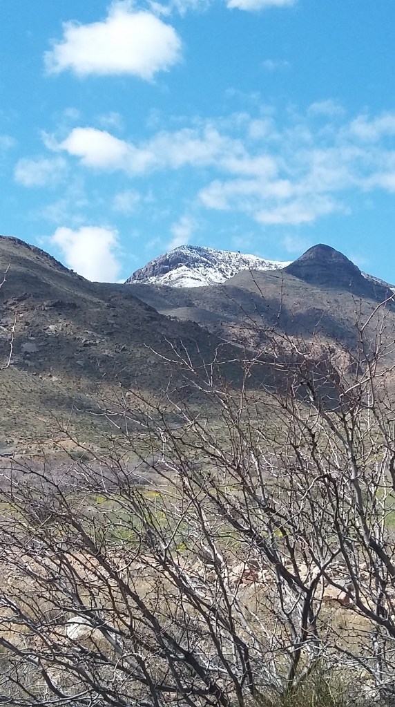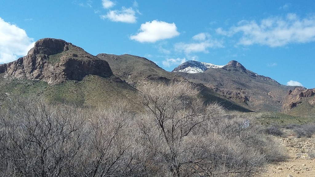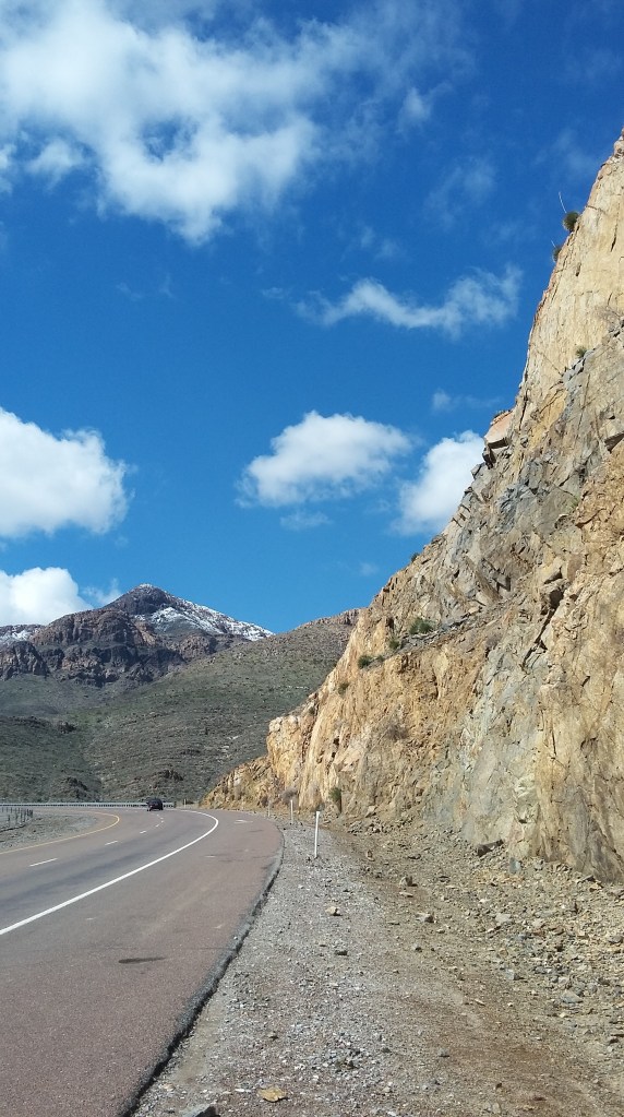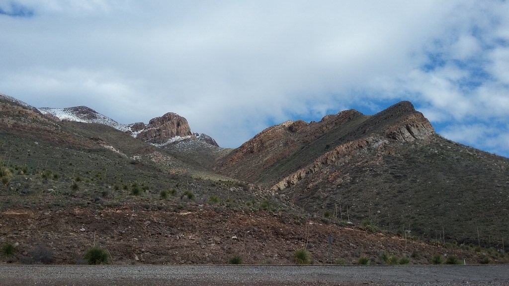 Today I made a memory. Nada mas, pues, para mi, es muy importante. After calling the work week a done deal, our eleven-year-old son accompanied me on a short drive south of Las Cruces to have a look around at an interesting stretch of the Organ Mountains. Short of the Texas line by about three or four miles, the southern end of the Organs disappears under the earth to create the Anthony Gap, that sort of proverbial feature in many Westerns where the good guys head off the bad guys just as lampooned in “Blazing Saddles,” and although the gap is relatively wide, some short distance to the south the uplift begins anew in a mighty fashion that bears the name of the Franklin Mountains.