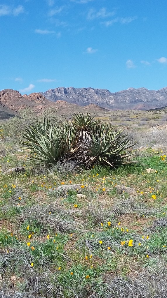 The Franklins, like their nearby, northern neighbors run along a north-south axis, and curiously Nineteenth Century U.S. military cartographers portrayed the Organs and the Franklins as one continuous range rather than two. But it ain’t so. Tectonics and ancient geology have had their say, despite what Man thinks. Yet those great elemental forces seldom daunt poetic souls. Case in point: if you stand in the middle of Anthony Gap facing to the east—the source of wisdom—and extend your arms in the manner of the lower attitude Leonardo di Vinci articulated in his classic study of proportion, your fingertips would point directly toward two fancifully named geological features. Down the view-line of your right arm rises North Anthony’s Nose, a prominent point demarcating the northern edge of the Franklin Mountains, and when your good eyes gaze along your left arm in the opposite direction your peepers perceive a conical uplift known as Bishop Cap. To your back, that is, to the west, about five miles, courses ye olde Interstate 25 with its many wayfarers zipping by at breakneck speed thoroughly oblivious to the natural beauty surrounding them and ignoring Ferris Bueller’s advice. But there they are, North Anthony’s Nose and Bishop Cap keeping an eye on one another as they’ve done for something like 30 million years … and I doubt either one’s gonna blink anytime soon, as it must be a matter of pride between those two. C’est la guerre, que no?